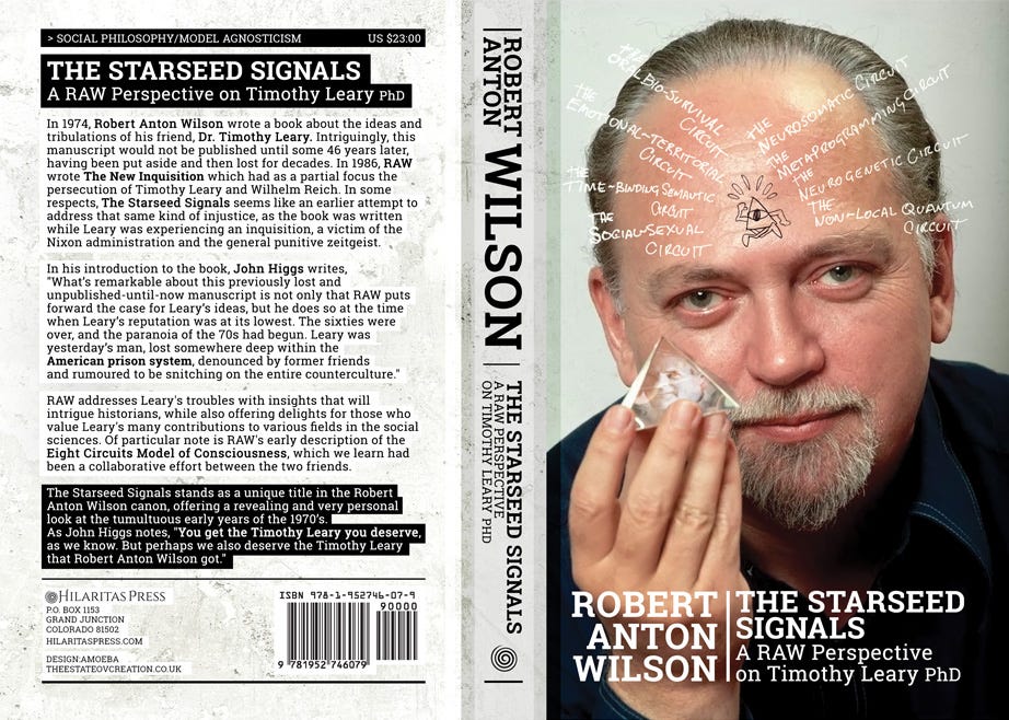 The Starseed Signals was a lost book, found by Dr. Robert Newport in Discordian co-founder Greg Hill’s archives, heading for a dumpster. It was rescued by Newport and handed over to Adam Gorightly, who contacted the Wilson Family Trust, but the story is more complex than this and is told by Richard Rasa in the “Publisher’s Note” of Starseed, pp.xi-xiv.